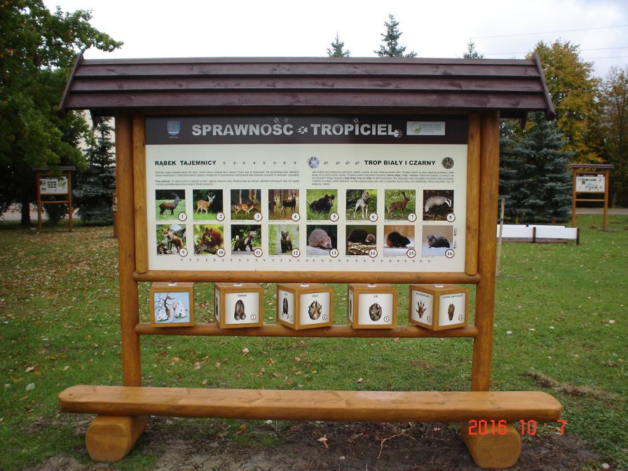 Tematy tablic ekologiczno-edukacyjnych: zwierzęta leśne, w jaki sposób zwierzęta zaznaczają swoją obecność, zwierzęta chronione Polski, leśni drapieżcy, leśne ssaki kopytne, ptaki naszych lasów, poznajemy ptaki, rodzime ptaki chronione, ptaki – leśni soliści, ptaki miejskie, ptasie klejnoty.